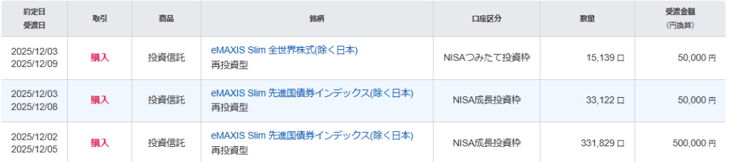 新NISA戦略NISA積立設定の買い付け状況ついて(2025年12月)