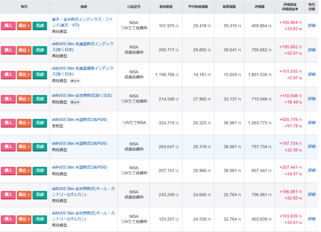新NISA戦略 保有商品の評価損益と評価損益率について