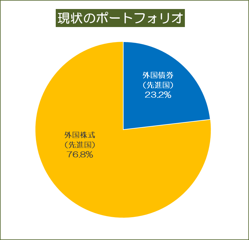 モデルポートフォリオは、債券30%、株式70%にし、リターン9.3%を狙っていますが、現状はしばらく株式を積み立てていた関係で、債券23.2%、株式76.8%になっています。上旬に50万円債券を追加購入したのもこのモデルポートフォリオに近づけるための措置でした。債券の比率を高めればリスクリターン共に抑えられるより保守的なポートフォリオになりますが、しばらくはこの形で推移させようと思います。